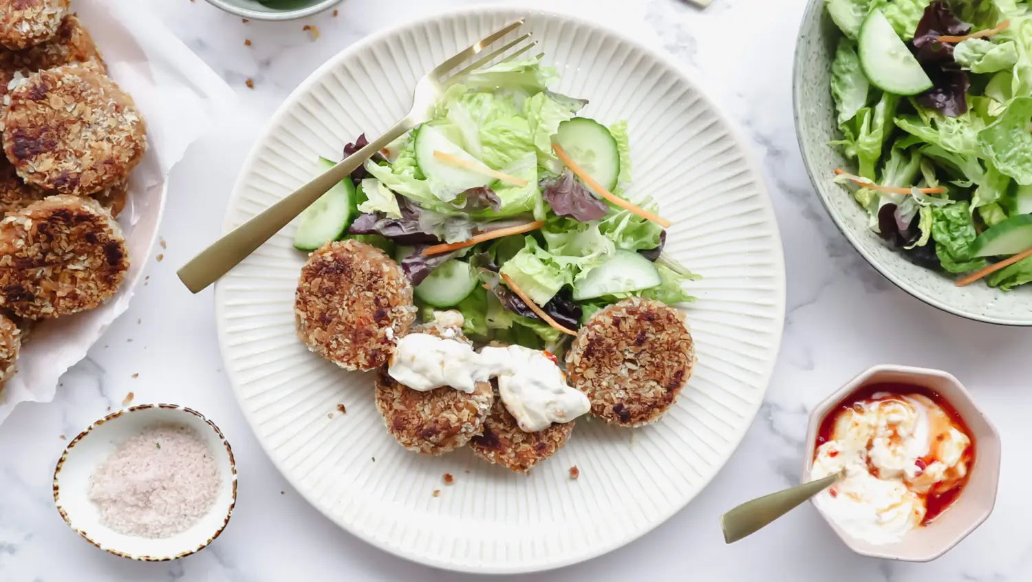 Crispy veggie burgers with garden salad & burger sauce