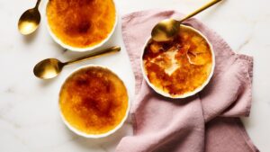 If you don't have a blow torch: Crème brûlée should be first refrigerated overnight. Preheat the combi steam oven grill to high. Place crème brûlée under grill for 1 minute or until sugar is melted and caramelised. Refrigerate afterwards for at least 20 minutes and up to 1 hour (to reset custard immediately under toffee), then serve.